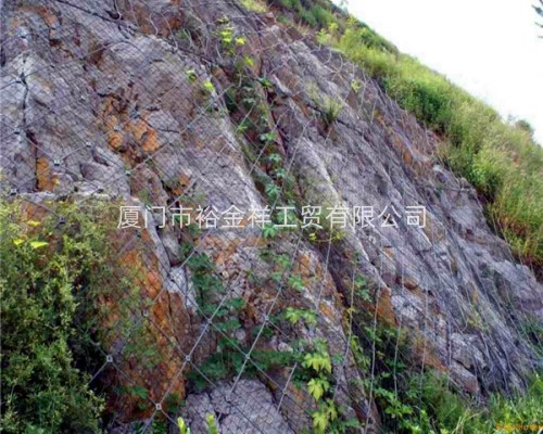 鋼柱和鋼絲繩網(wǎng)連接組合構成一個(gè)整體,對所防護的區域形成面防護,從而阻止崩塌巖石土體的下墜,起到邊坡防護作用。